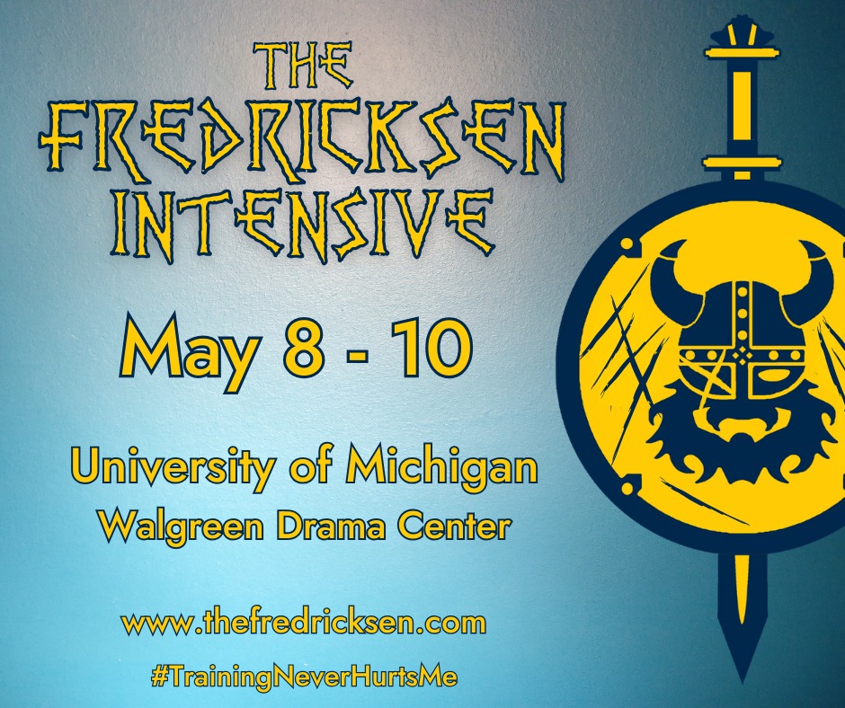 The Fredricksen Intensive May 8-10, 2026 Walgreen Drama Center University of Michigan Four Tracks to choose: Erik’s Rapier & Dagger, Longsword, Dual Weapons Track, or Theatrical Firearms Registration opens on the Ides (March 15th) www.thefredricksen.com